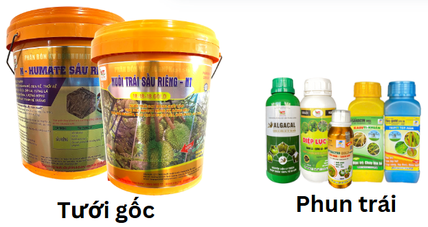 | Sầu riêng vườn chú Hùng theo qui trình Nông Thịnh | Sản phẩm tưới nuôi trái chú Hùng sử dụng |